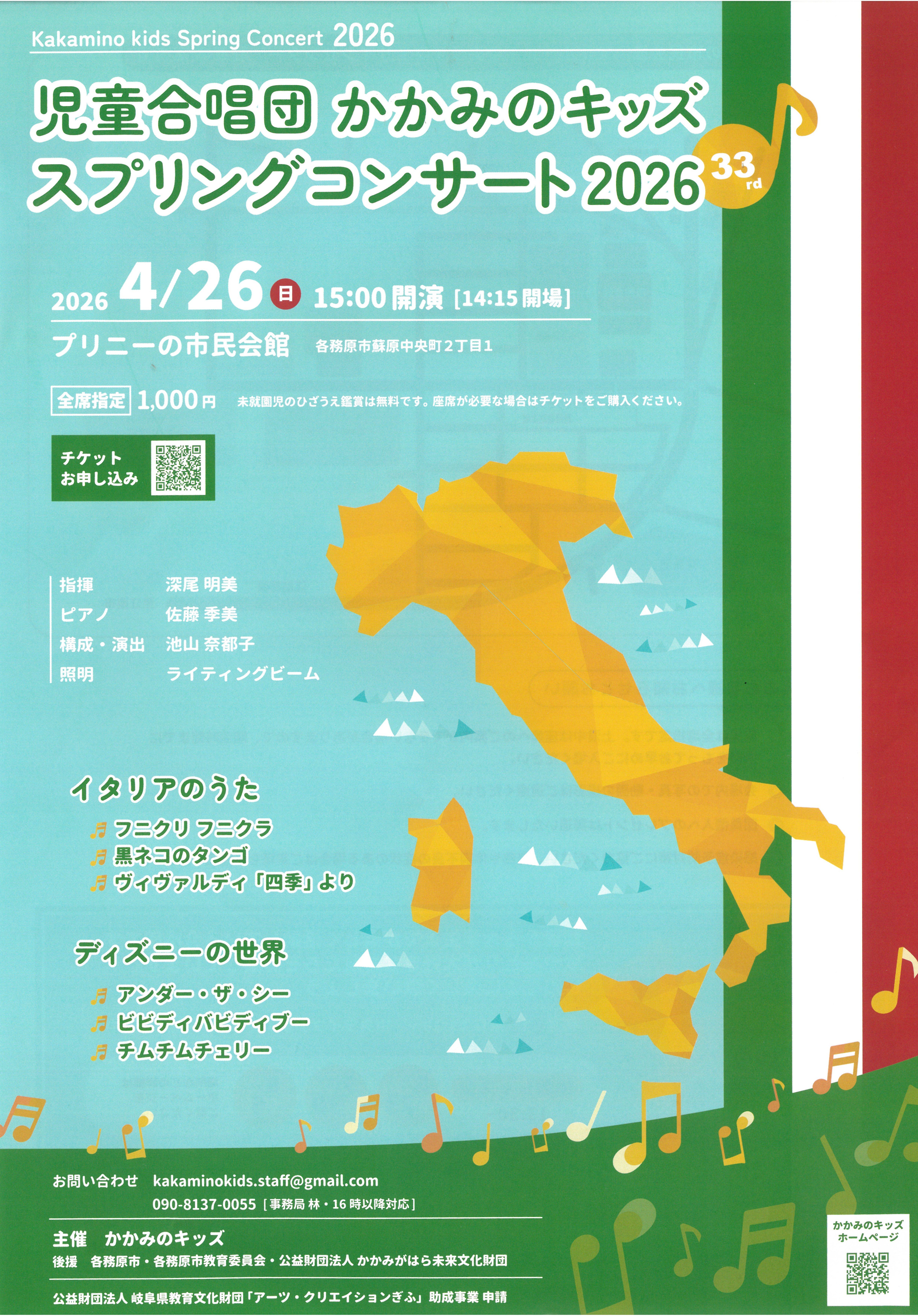 お問合せ/児童合唱団かかみのキッズ 090-8137-0055(事務局16:00以降対応) -