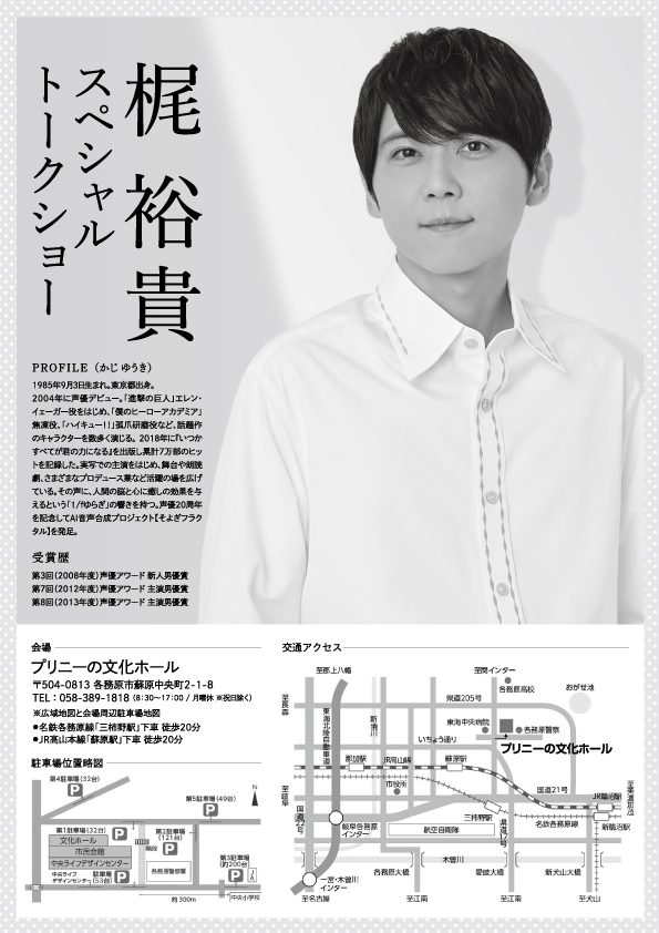 超人気声優の梶 裕貴さんが、なんと各務原の地へやってきます!